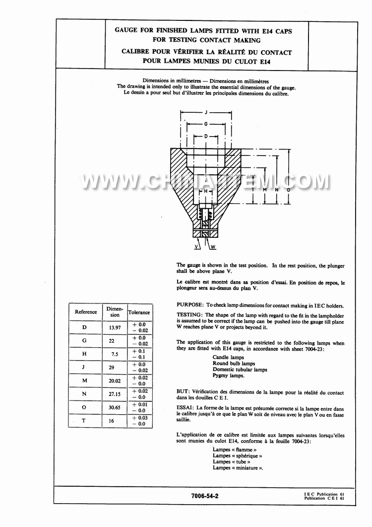 The application of this gauge is restricted to the following lamps when they are fitted with E14 caps, in accordance with sheet 7004-23: