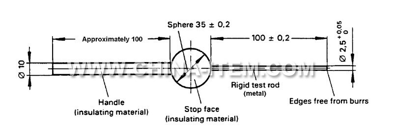 2. IP3X Test Probe C ( Test Probe C) is the necessary tool to proceed protecting electric shock test of household and similar electrical appliances.